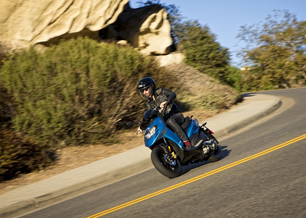 Компания Piaggio представила новый Typhoon 50 по очень соблазнительной цене – всего 1400 евро или 1850 долларов США. Новинка интересна внешне и показывает прекрасные результаты по динамике и скорости, благодаря обновленному двигателю. Двигатель теперь четырехтактный, четырехклапанный, объемом 49 см3. Охлаждение – воздушное. Также новинка оборудована 14 дюймовыми колесами и большим баком. Новый двигатель способен раскрутиться до 9500 оборотов, выдавая при этом 4,5 л.с. мощности. Максимальный крутящий момент достигается при 8000 оборотах. При этом максимальная скорость составляет скромный по итальянским меркам 65 км/ч.